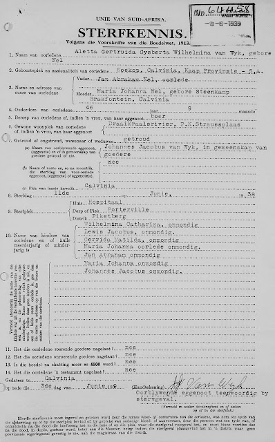 oorl. 11/06/1938, Porterville x 22/10/1920, Calvinia met Johannes